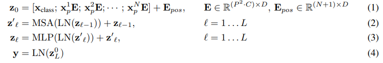 º \( \textbf{z}_{L}^{0} \) : 최종 L 번째 Layer의 0 번째 Token