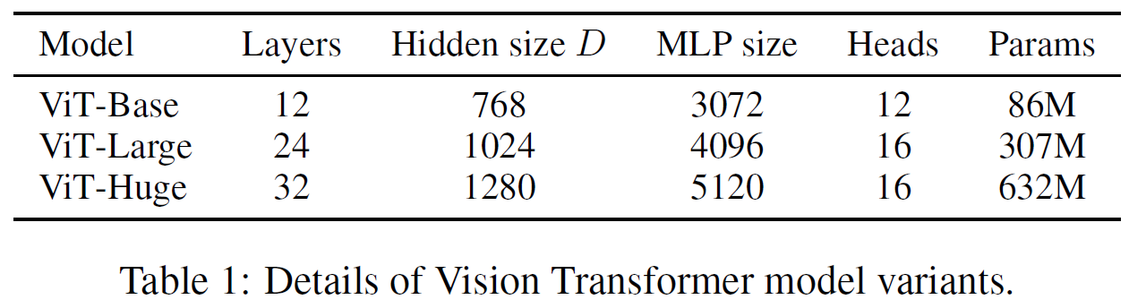- Sequence Lenght : Patch의 크기 제곱의 반비례 → 패치가 작아지면, 계산량 증가